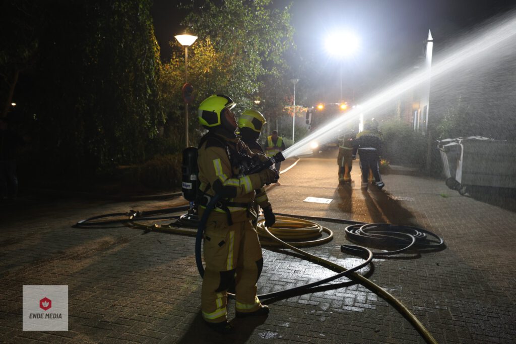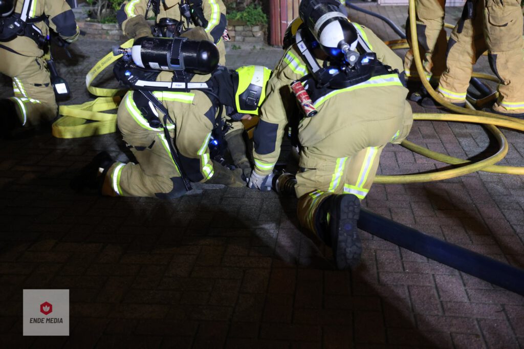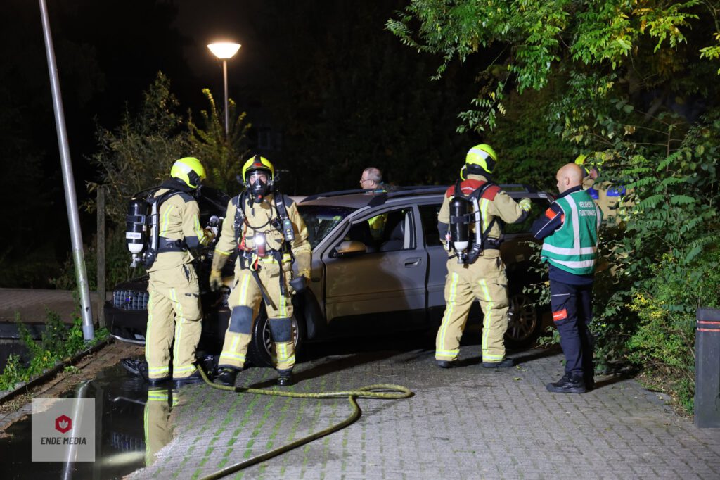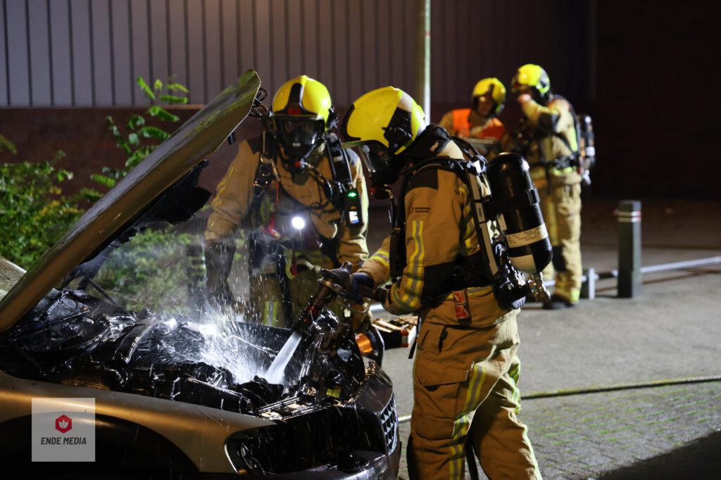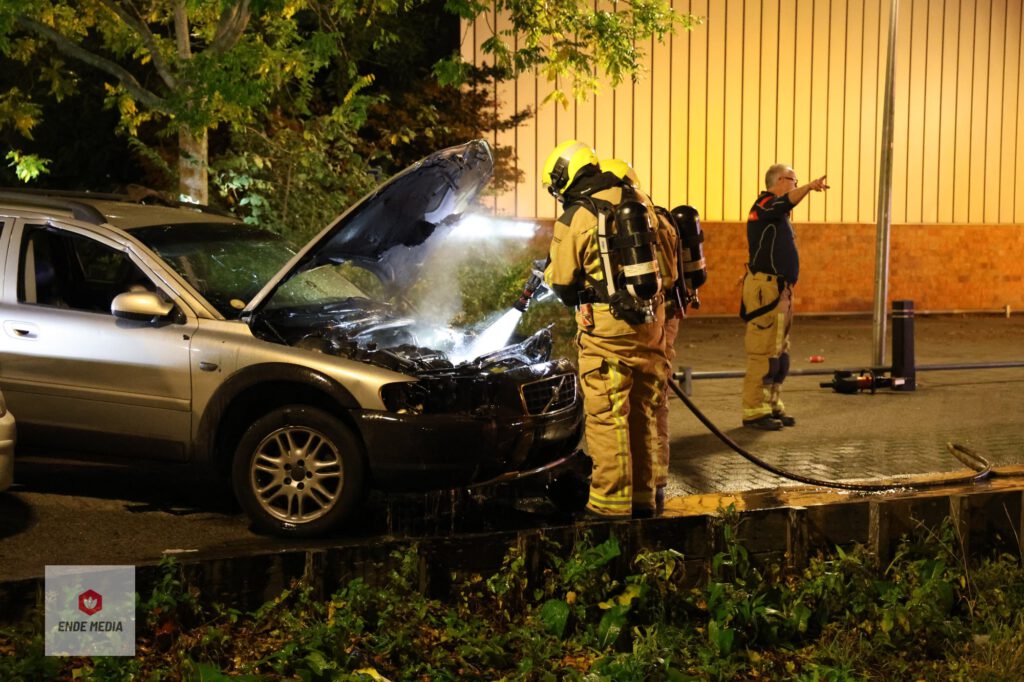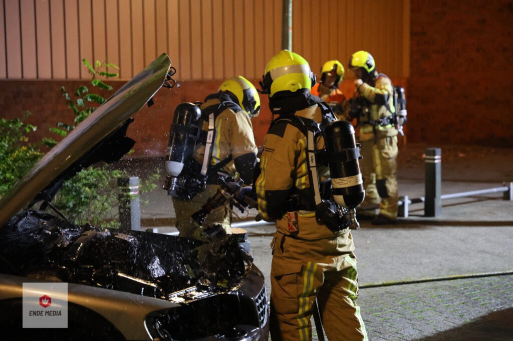 Tegelijkertijd, aan de andere kant van het schoolgebouw, werd een zwaar verkeersongeval nagebootst: een frontale botsing tussen twee voertuigen. Ook hier was de inzet van de brandweer vereist voor hulpverlening en het bevrijden van een slachtoffer uit de autowrakken. Tegen de achtergrond van de brand op de school vatte de motor van een van de voertuigen vlam, wat extra complexiteit aan de situatie toevoegde.