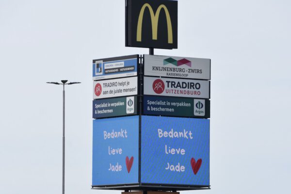 Bedankt lieve Jade’ op metersgrote reclamezuil langs de A20