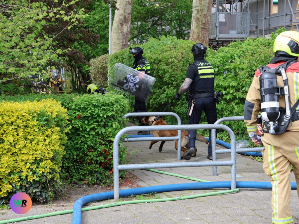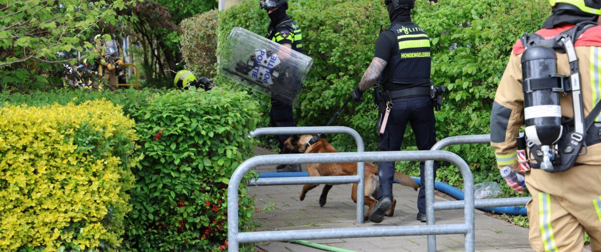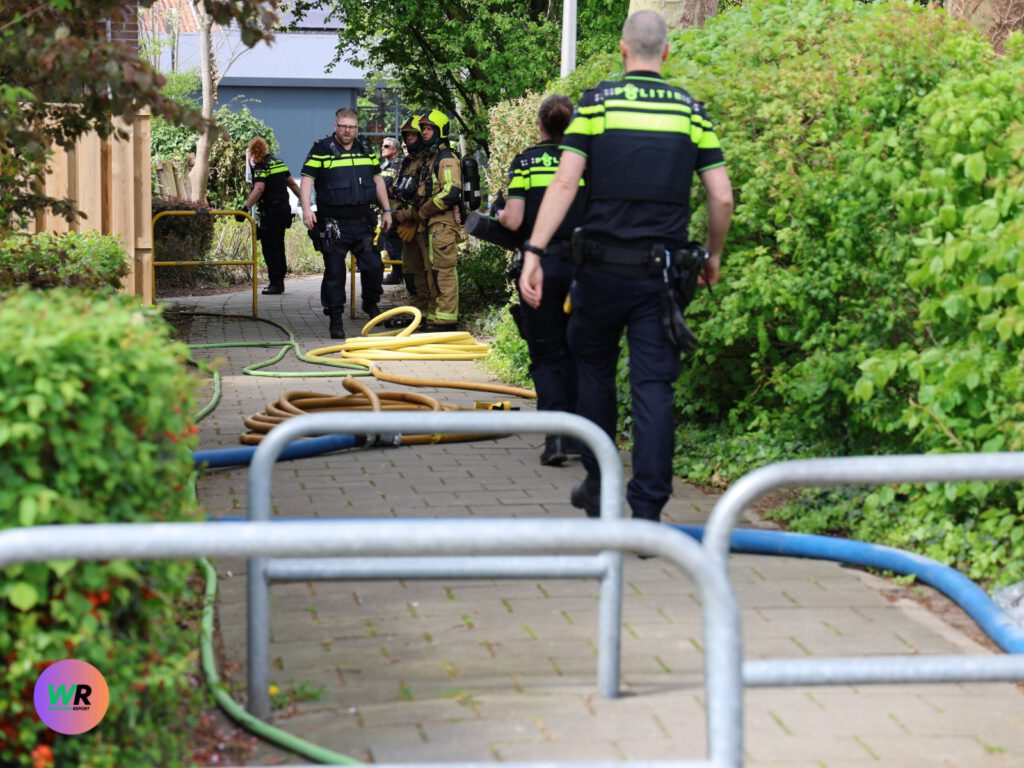 Binnen trof de brandweer smeulende huisraad aan die kortstondig vlam had gevat. De spullen zijn naar buiten gebracht en afgeblust. De politie is een zoektocht gestart naar de voormalig bewoner en heeft de woning in beslag genomen voor verder onderzoek.