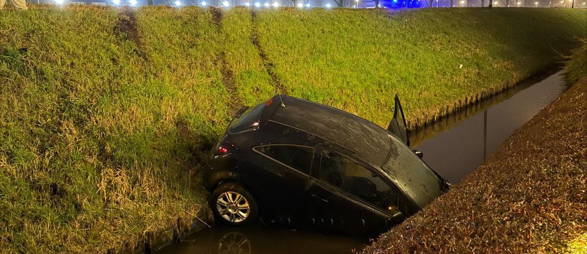 In Wateringen zijn de hulpdiensten zondagavond gealarmeerd voor een ongeval aan de Dorpskade. Een automobilist was daar met zijn voertuig van de weg geraakt, waarna de auto met de voorzijde in het water belandde.
