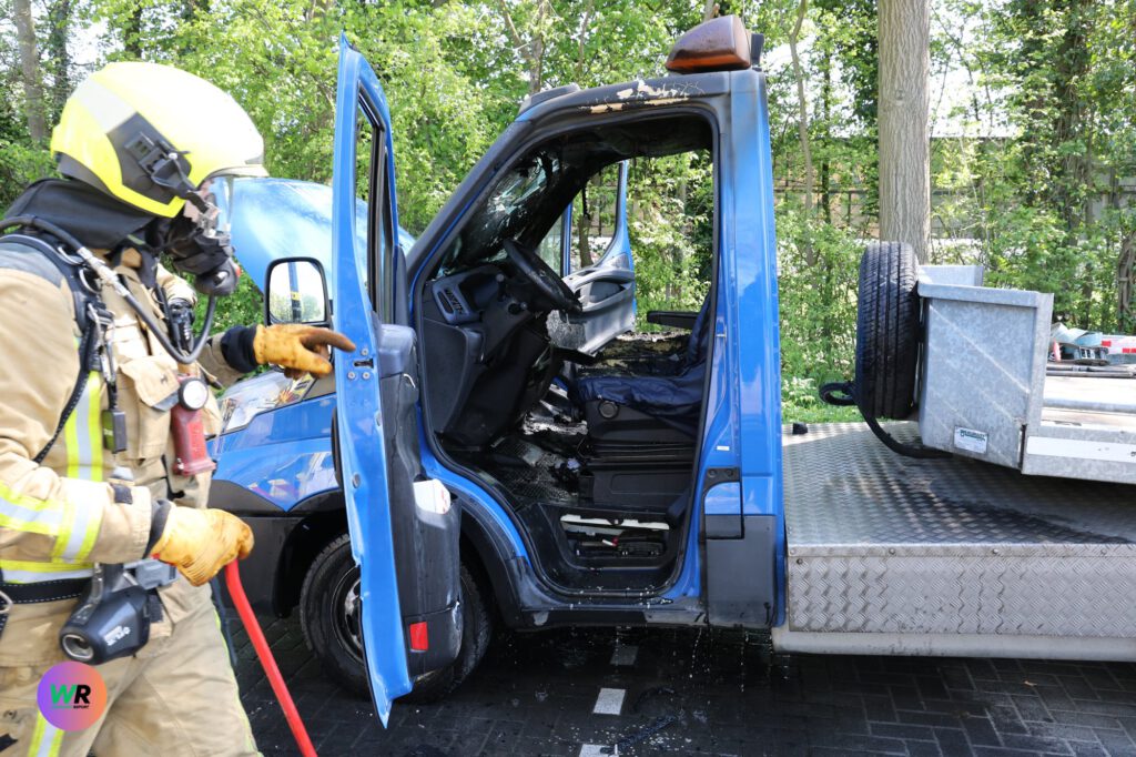 Donderdagmiddag is een bestelbus met aanhanger van een hoveniersbedrijf uit Wateringen van binnen verwoest door een brand. Het incident vond plaats terwijl de medewerkers aan het werk waren op de Hoogwerf in Naaldwijk.