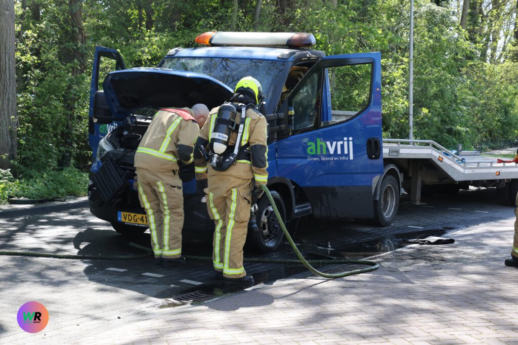 Het hoveniersbedrijf draagt zelf zorg voor de berging van het voertuig. Over de exacte oorzaak van de brand is op dit moment nog niets bekend.