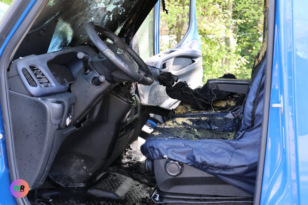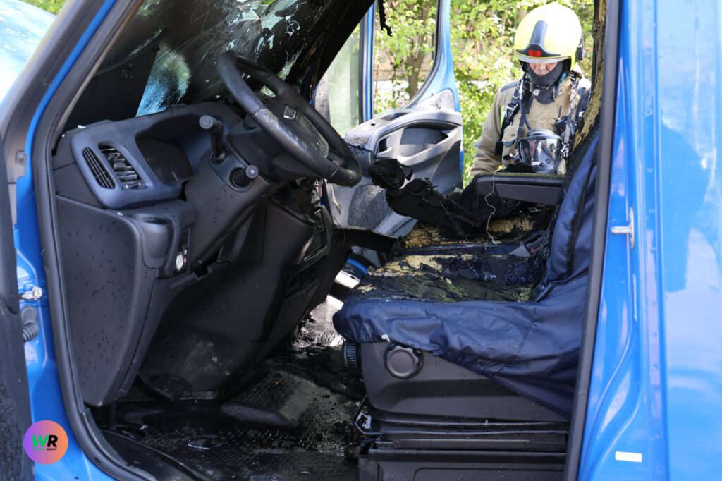 De brandweer heeft de brand in het voertuig geblust. Om de brandhaard volledig te kunnen bereiken en te controleren op resterende hotspots, moesten de spuitgasten delen van de bestelbus slopen. Het interieur van de bus is door de brand volledig zwartgeblakerd en verwoest.