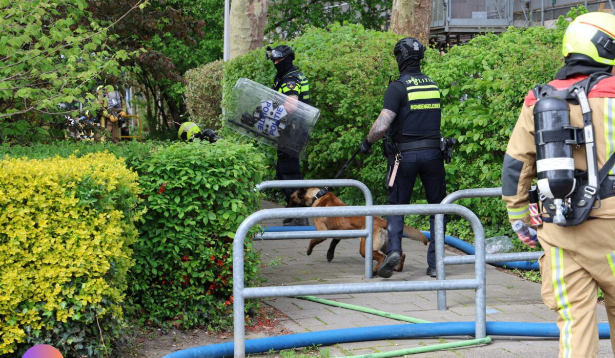 Bij de inval door de politie, die onder meer een onderhandelaar en hondengeleiders had opgeroepen, bleek de man niet meer in de woning aanwezig te zijn. De brandweer trof binnen smeulende huisraad aan, die naar buiten is gebracht en afgeblust. De politie nam de woning direct in beslag voor technisch onderzoek.