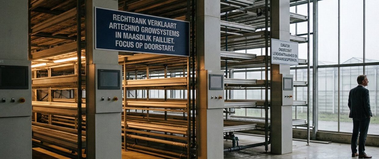 Het bedrijf Artechno Growsystems uit Maasdijk is dinsdag door de rechtbank failliet verklaard zo meldt bloemen en planten nieuws. De uitspraak volgt kort nadat de onderneming vorige week al uitstel van betaling had aangevraagd. Hoewel er achter de schermen intensief werd gezocht naar nieuwe kapitaalinjecties om de toekomst van de specialist in vertical farming veilig te stellen, bleek de beschikbare tijd uiteindelijk ontoereikend.