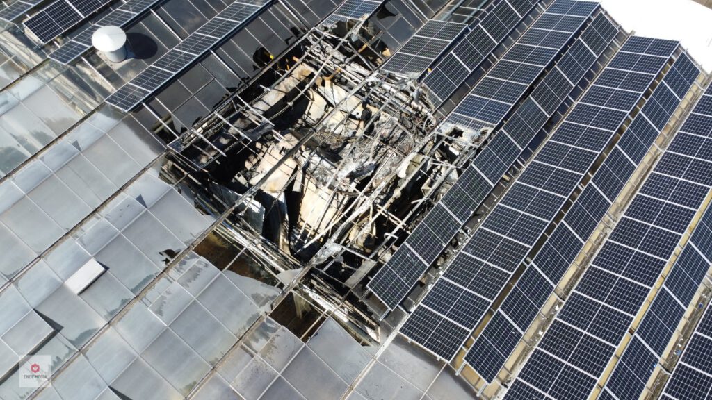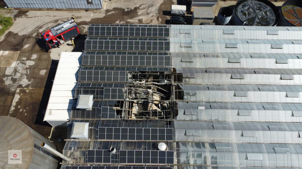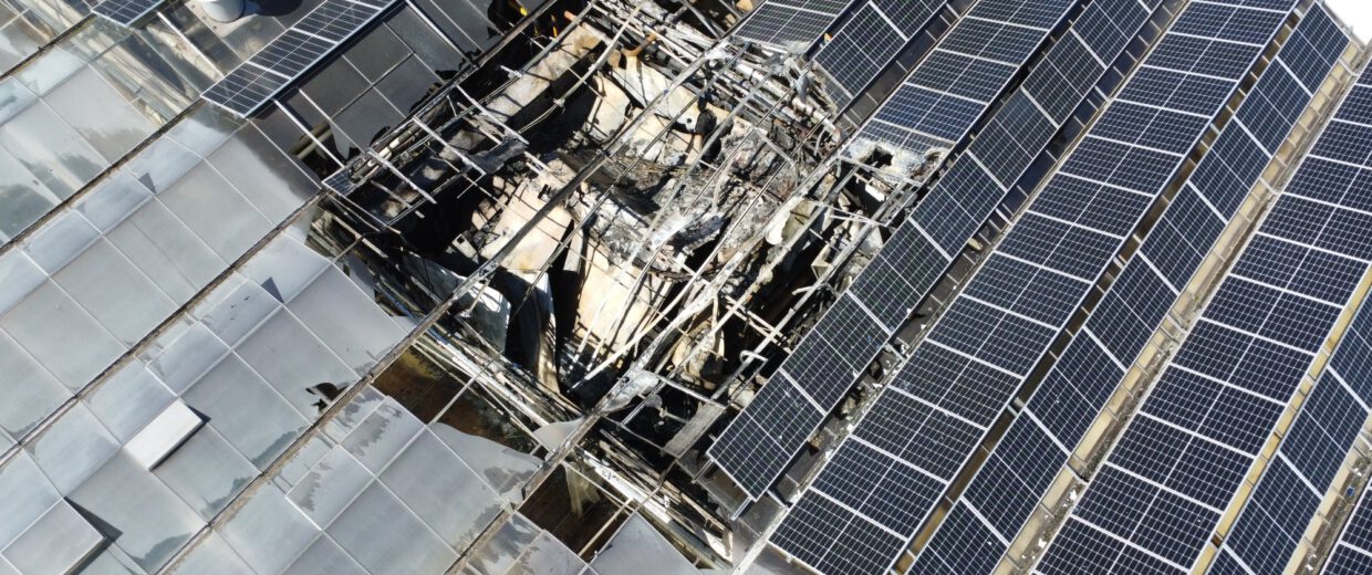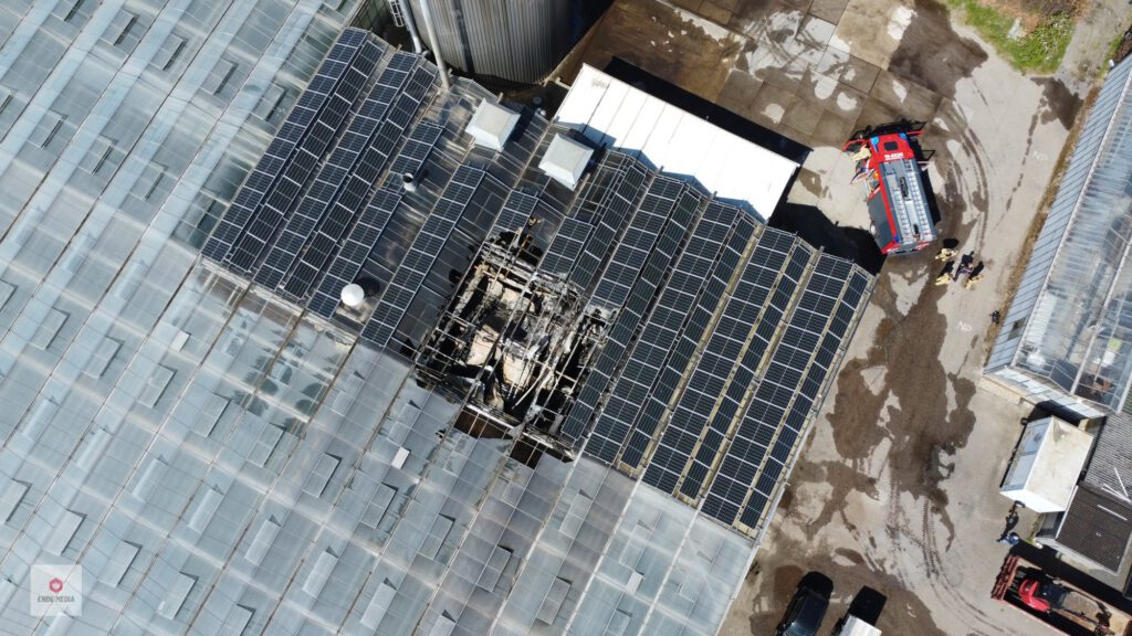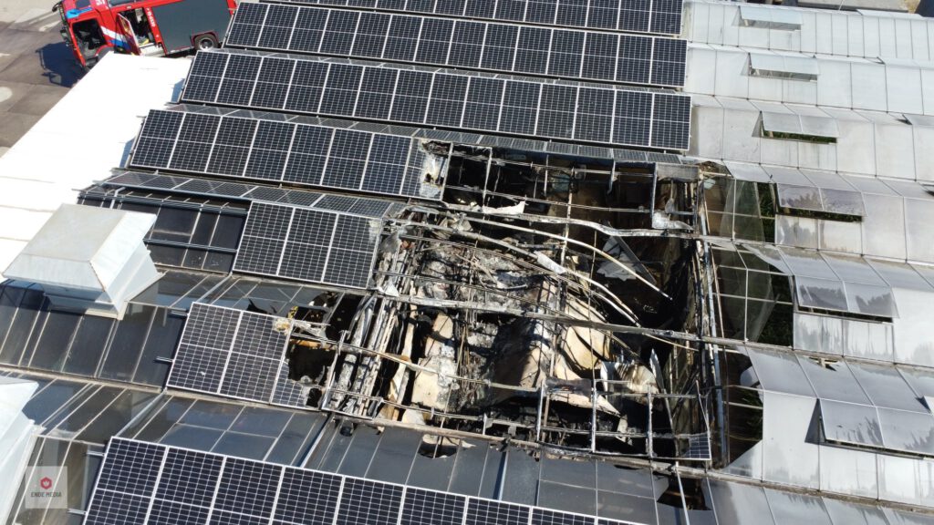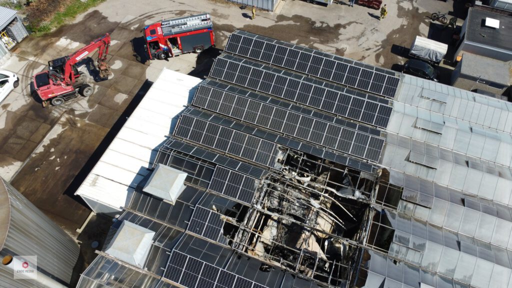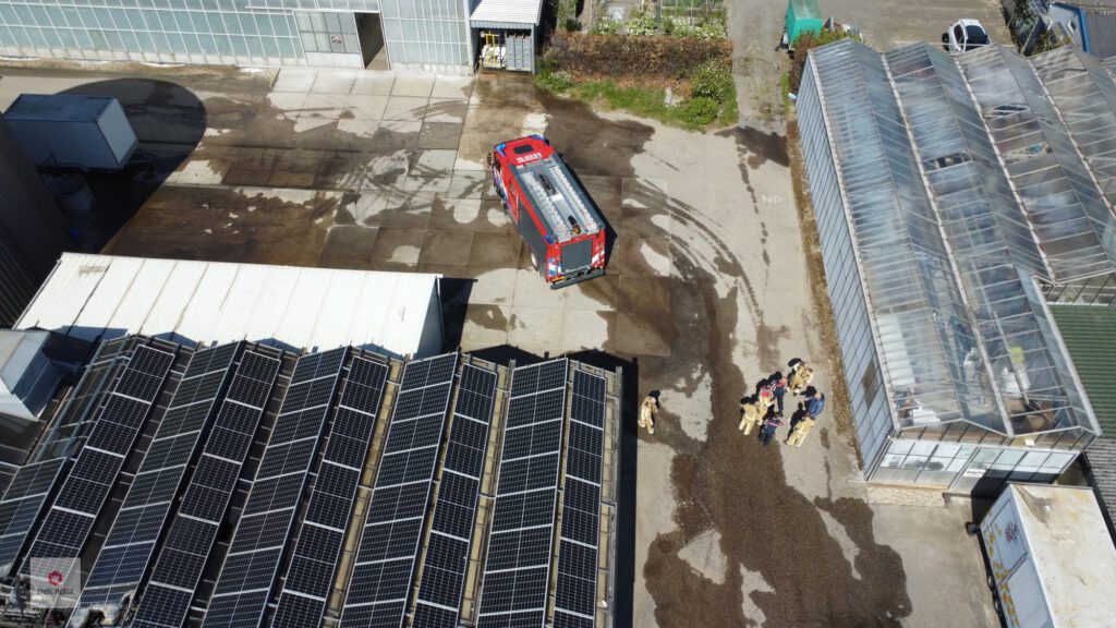 Nadat de brandweer het vuur onder controle had, werd de omvang van de schade pas echt duidelijk. Met behulp van een drone hebben we beelden van bovenaf gemaakt, waarop de verwoesting goed zichtbaar is. Ook de zonnepanelen op het dak van het pand raakten beschadigd. Resten van deze panelen zijn in de directe omgeving neergekomen. Volgens een woordvoerder van de brandweer leveren deze brokstukken geen gevaar op voor de omgeving.
