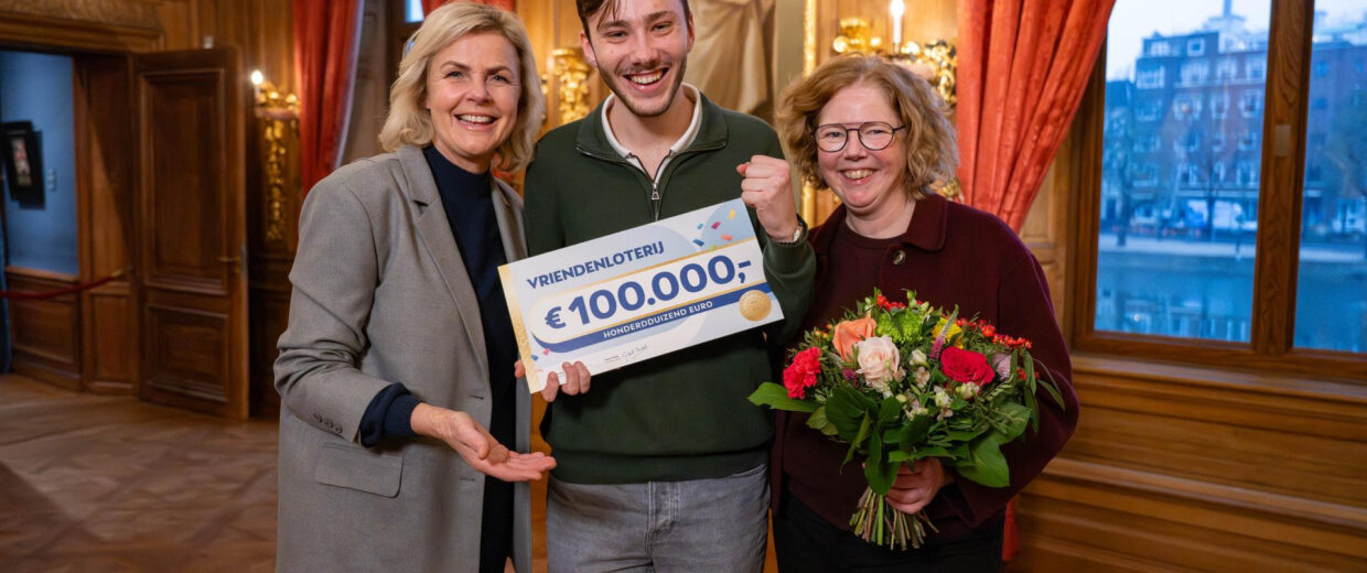 | Een grote verrassing voor Yannick uit De Lier! Hij heeft in de trekking van de VriendenLoterij een bedrag van 100.000 euro gewonnen. De gelukkige winnaar werd samen met zijn moeder Monique in het Mauritshuis verrast door VriendenLoterij-ambassadeur Irene Moors. |
