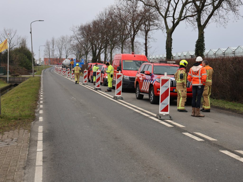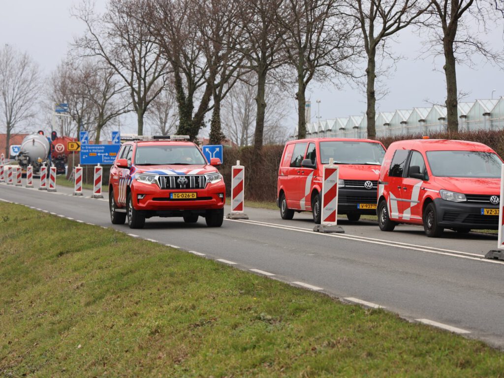 De brandweer van ‘s-Gravenzande was snel ter plaatse, gevolgd door de Officier van Dienst Brandweer (OvD-B), die direct besloot de Nieuwelaan volledig af te sluiten voor al het verkeer. De politie nam de wegafzetting later over bij de kruising met de Maasdijk. Deze afsluiting leidde direct tot aanzienlijke verkeershinder in de omgeving. Fietsers werden door de politie omgeleid via Bagijneland om de werklocatie veilig te passeren.