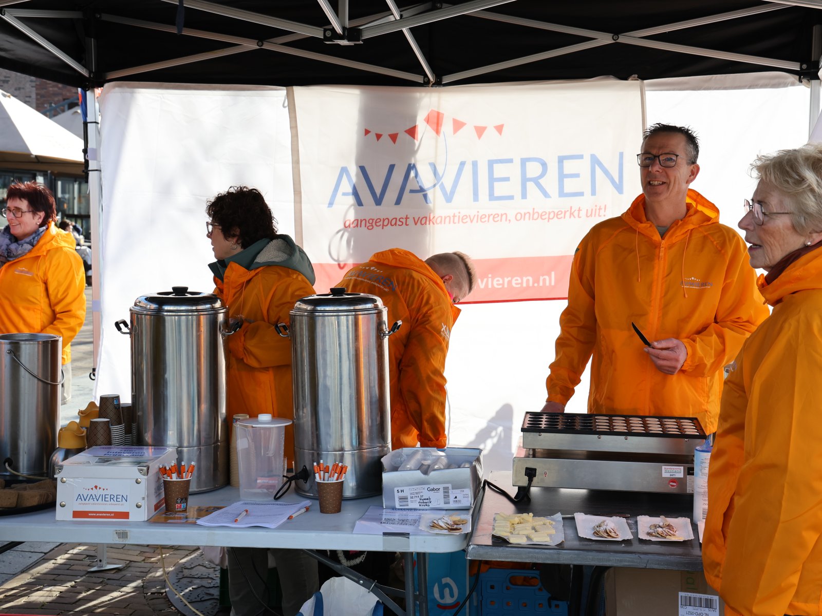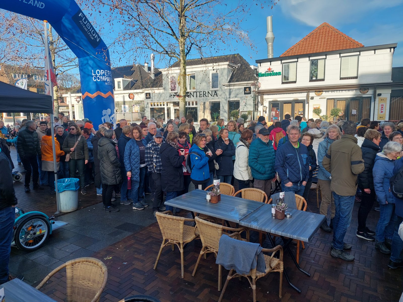 Bij terugkomst op het Marktplein ging het feest vrolijk verder. Wandelaars konden genieten van verse poffertjes, een glaasje glühwein en meedoen aan een prijsvraag met fantastische prijzen, beschikbaar gesteld door Eetcafé De Witte, Lopers Company, Intersport Zuijderduijn en Stichting Avavieren, die bovendien een rit met de elektrische strandrups beschikbaar stelde.