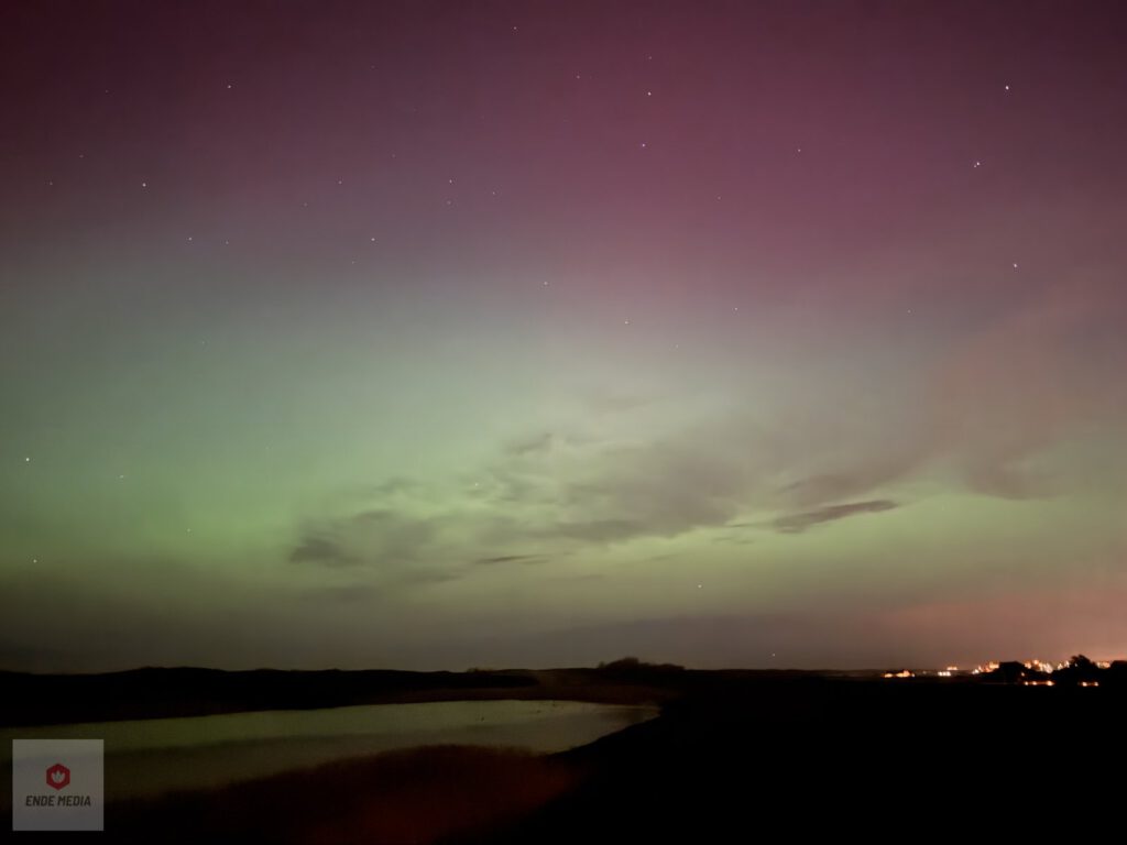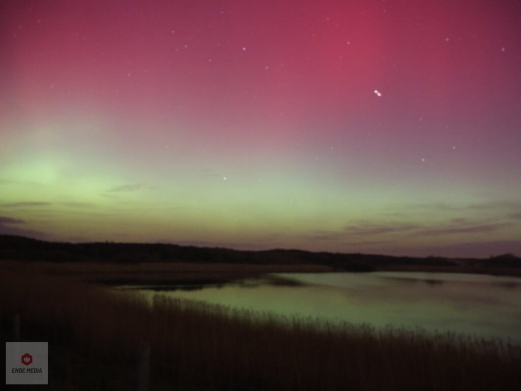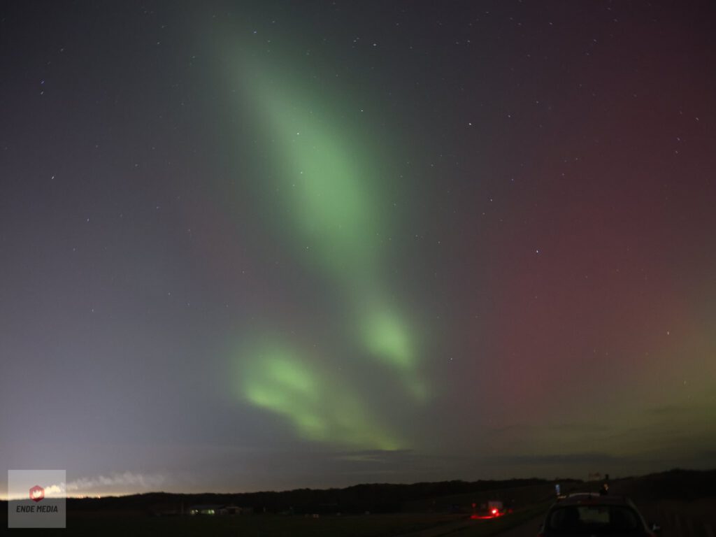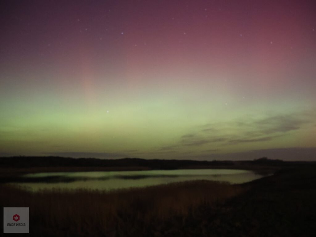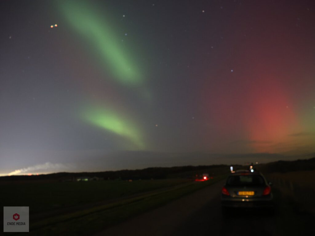 De Strandweg en het nabijgelegen natuurgebied De Banken veranderden maandagavond in een openluchttheater. Een zeldzaam helder noorderlicht zette de hemel in vuur en vlam, wat zorgde voor een toeloop van enthousiaste toeschouwers uit de regio.