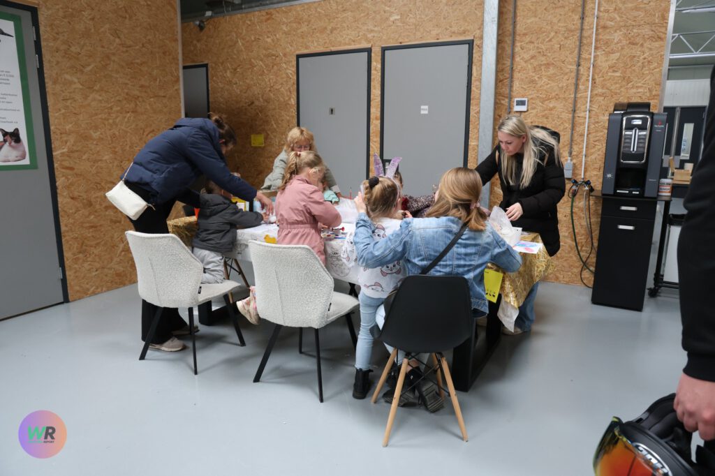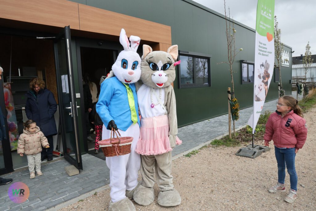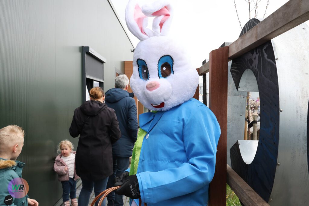 Al bij de ingang werd de toon gezet: twee vrolijke paashazen stonden klaar om de kinderen te verwelkomen, wat direct zorgde voor een feestelijke sfeer. Het was een komen en gaan van bezoekers die nieuwsgierig waren naar het reilen en zeilen binnen de opvang.