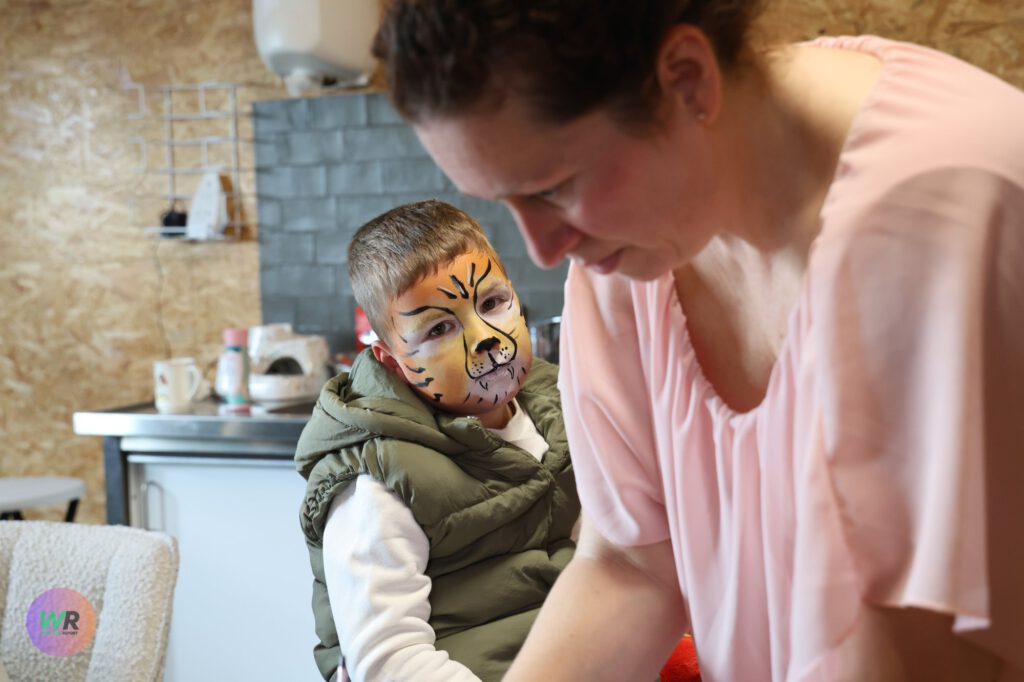 Binnen in het centrum was er van alles te beleven. De tafels lagen vol met kleurplaten en tekenmateriaal waar jonge kunstenaars hun creativiteit de vrije loop lieten. Voor wie liever zelf in een dier wilde veranderen, stond de schminktafel klaar; binnen de kortste keren liepen er dan ook trotse tijgers, vlinders en hondjes rond.