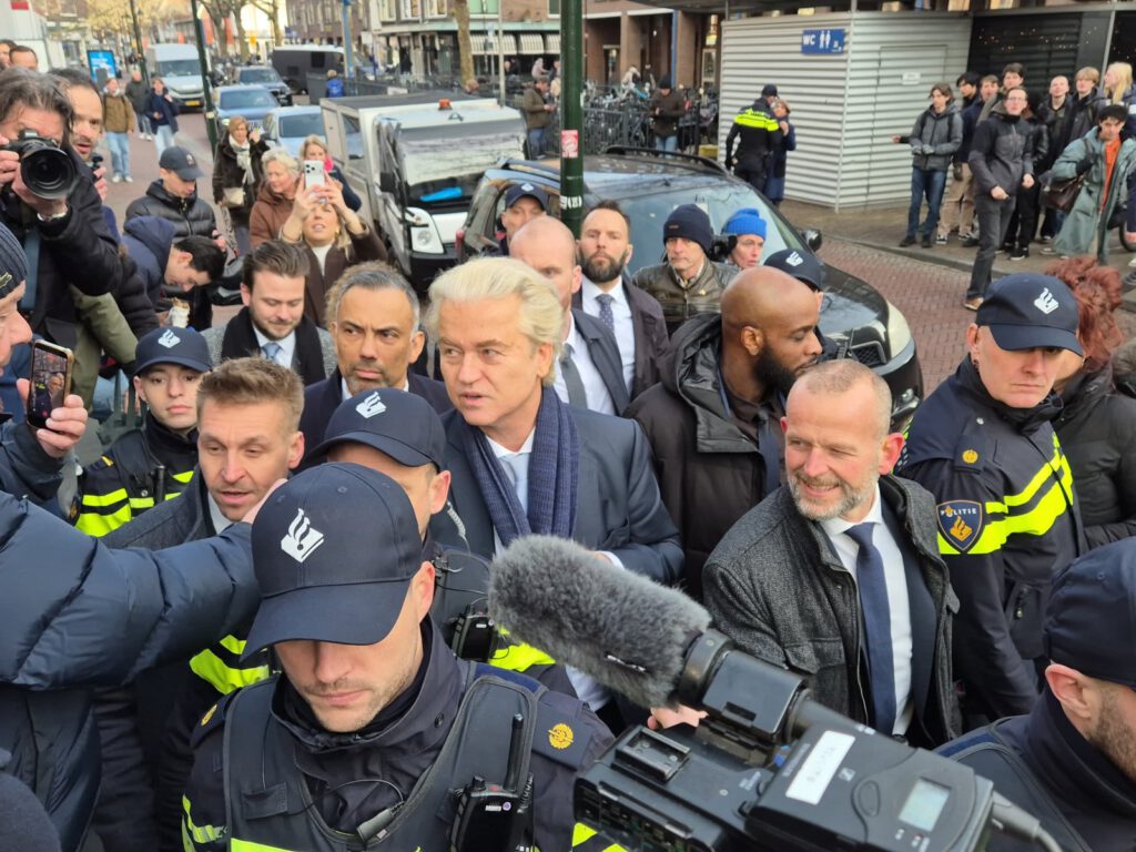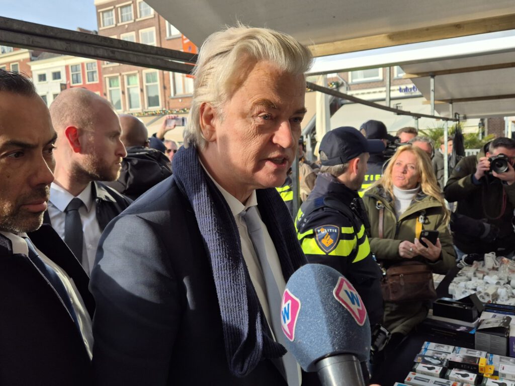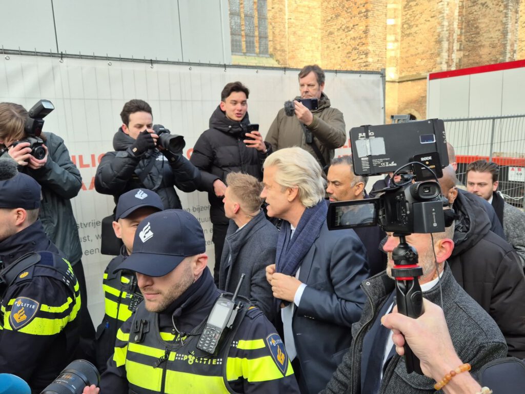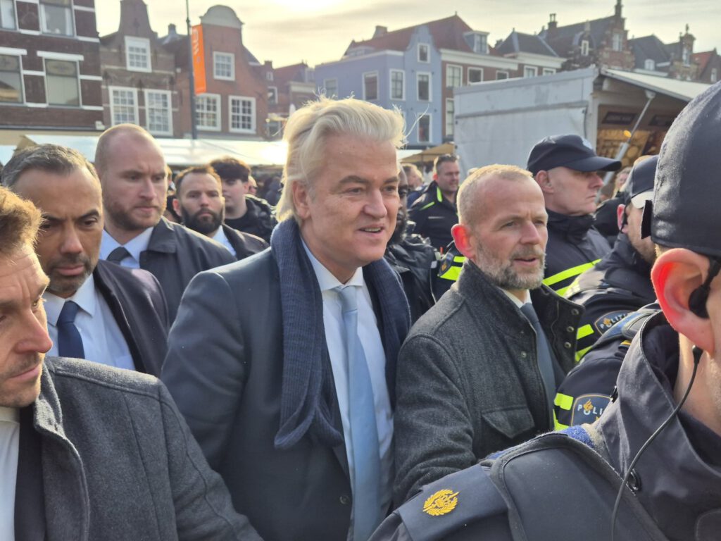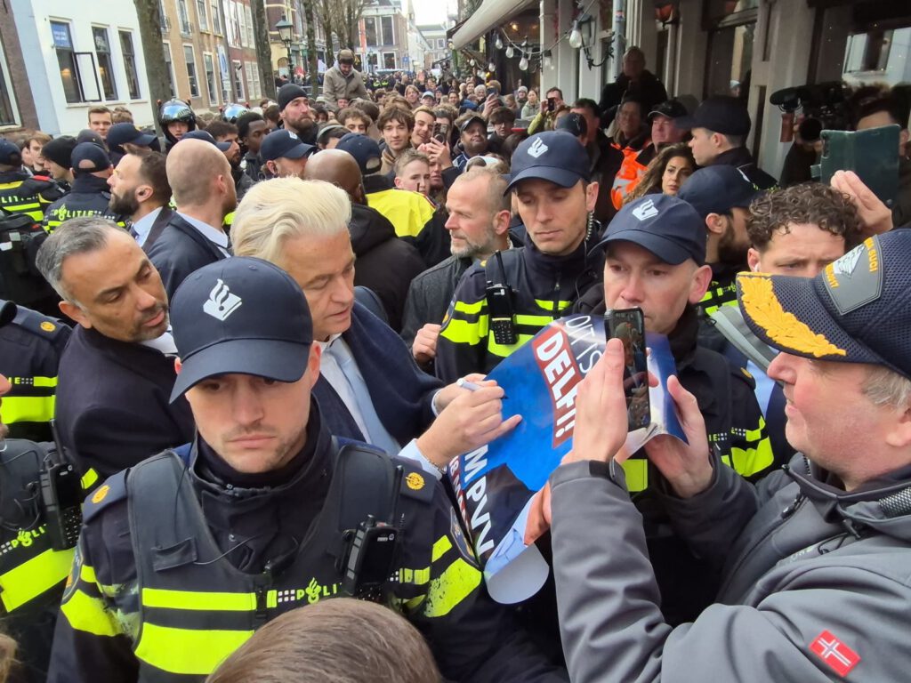DELFT - 'Heeeeeuuuh!' Luid gejuich klinkt er. 'Geertjeeeeeeeeee!' Honderden mensen zijn afgekomen op het bezoek van Geert Wilders aan Delft. Daar is de PVV-leider donderdagmiddag naartoe gereden vanwege zijn zelfbenoemde PVV azc tour.